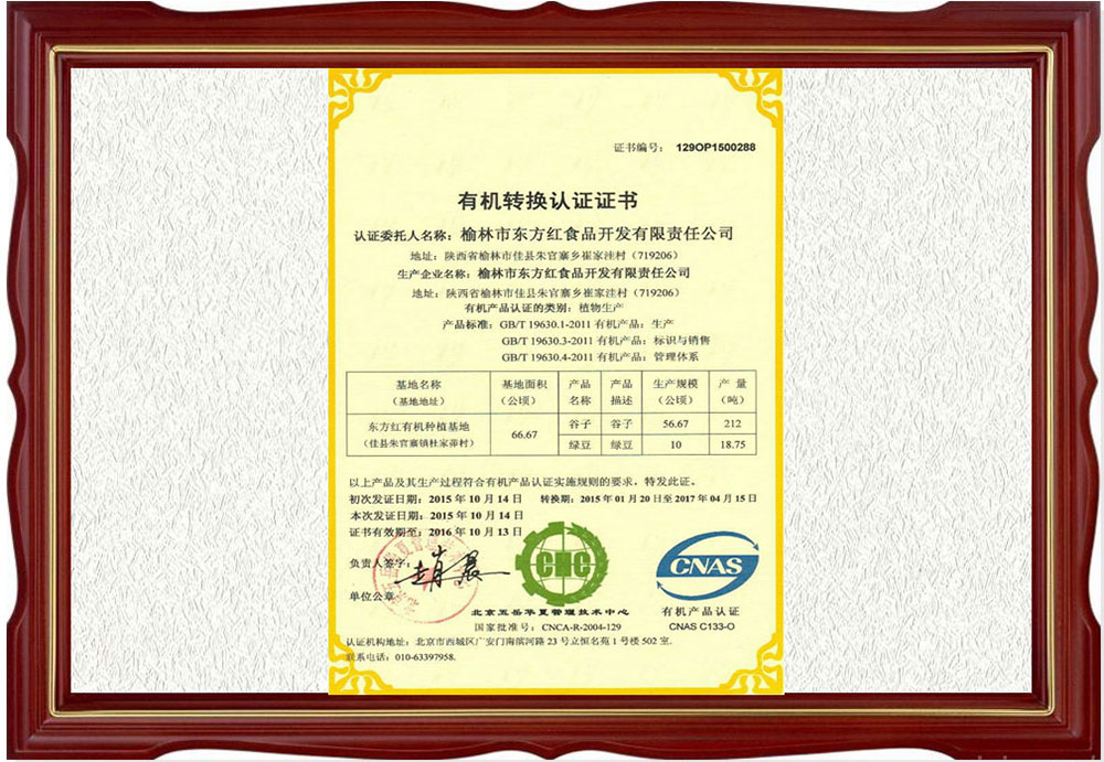 有機轉換認證證書