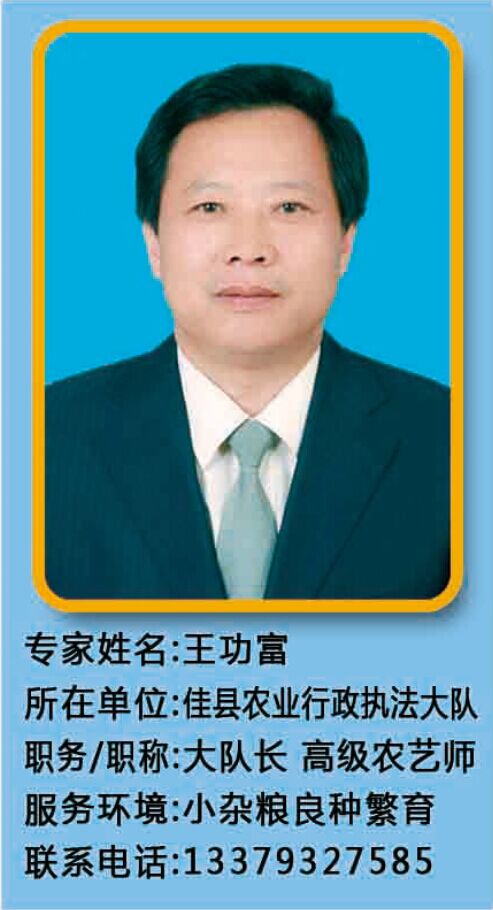 王功富:男,中共黨員,1982年畢業(yè)于榆林農校,現(xiàn)任佳縣農業(yè)行政綜合執(zhí)法大隊隊長(種子管理站站長),高級農藝師。
