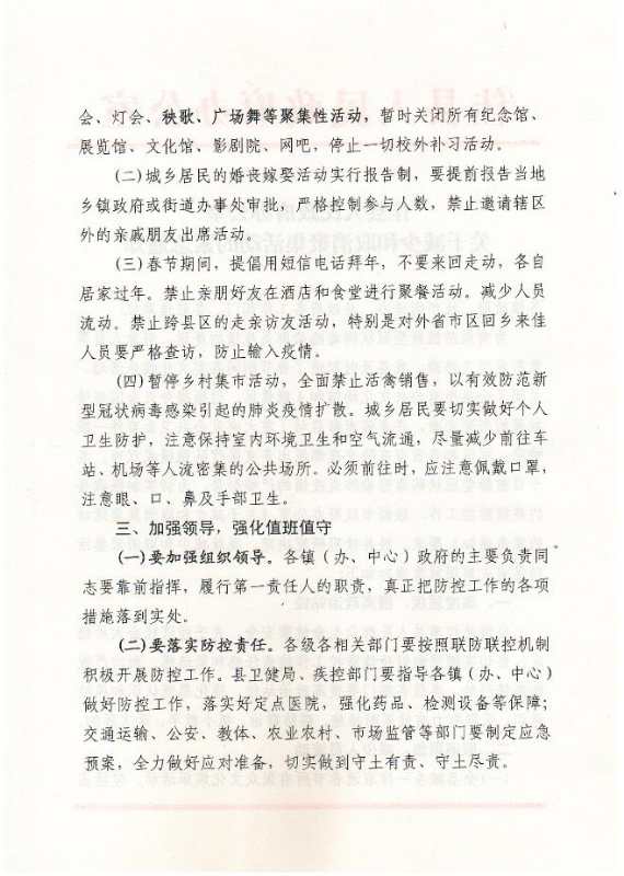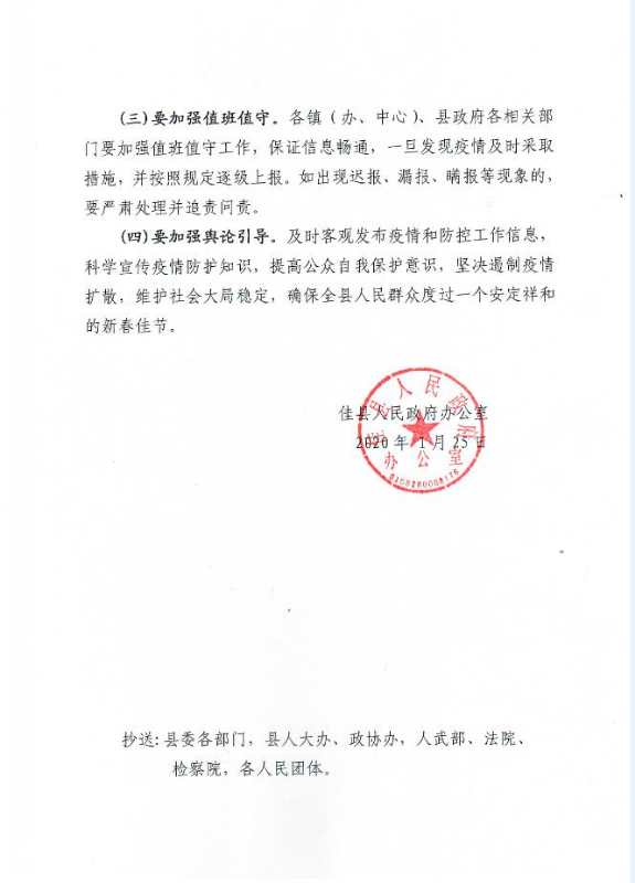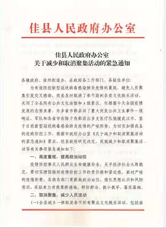 佳縣人民政府關于減少和取消聚集活動的緊急通知