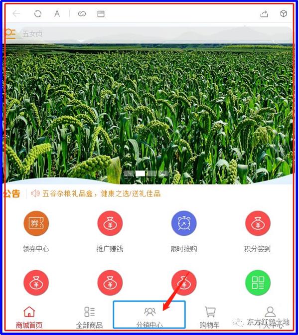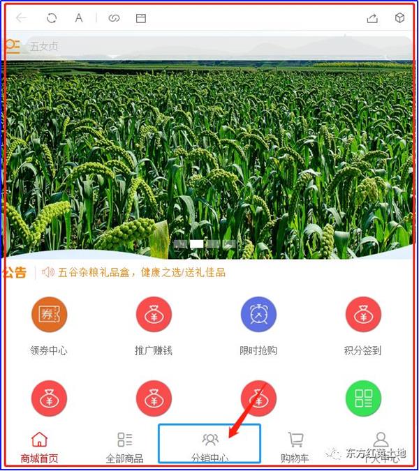 關注公眾號 【東方紅黃土地】 ===>商城.五女貞===>分銷中心(成為分銷商)===>活動.熱銷===>推廣海報